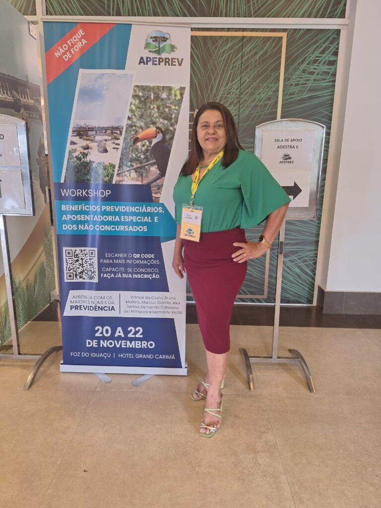A Gerente de Previdência do Fundo Previdenciário do Município de Sebastião Barros-SEBASTIÃO BARROS PREV, Sônia Rodrigues de Carvalho, participou do Workshop “Benefícios Previdenciários, Aposentadoria Especial e dos não concursados” da APEPREV realizado na cidade de Foz do Iguaçu/PR nos dias 20, 21 e 22 de novembro de 2023.